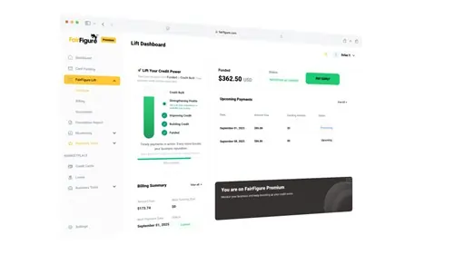 FairFigure is a business credit monitoring service, business financing company, and business credit builder platform. It empowers businesses by allowing accurate insights into their business financials, business credit scores, and same-day access to business credit-building funds with the FairFigure Business Capital Card.